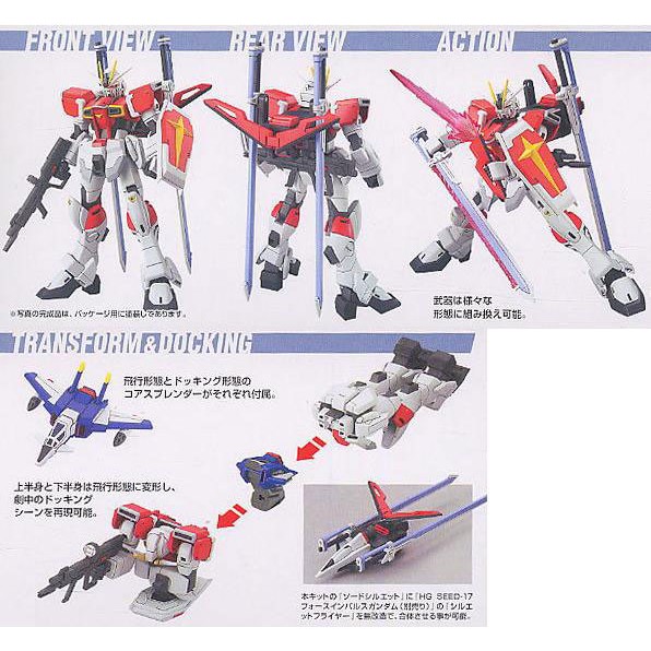 The HG Sword Impulse Gundam from Gundam SEED Destiny is a fantastic High Grade injection plastic kit, offering a fun and satisfying build. Pre-colored parts ensure a great look without painting, and the snap-fit assembly means no glue is required. Polycapped joints provide excellent articulation for dynamic posing, and stickers are included for added detail. This kit also features transformation capabilities, allowing you to separate the Core Splendor, Leg Flyer, and other parts for a fully immersive experience.